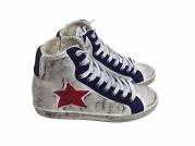 disponibili nella colorazione bianco in pelle bicolore con riporti blu, stella rossa, ad effetto sfumato (sporcato) su tutta la scarpa, dettaglio che da quel tocco vintage a queste scarpe realizzate a Barletta, dove la nostra mission si esplica nel fornirvi un prodotto di qualità, estremamente comodo , garantito made in Italy al 100%!