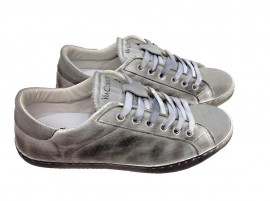 disponibili nella colorazione bianca in pelle, con riporto posteriore e parte anteriore grigio scamosciato, con lingua spezzata bicolore argento con logo stampato, e stella, ad effetto sfumato (sporcato) su tutta la scarpa, con la parte laterale traforata bucherellata, passalacci abbinato alla scarpa, dettaglio che da quel tocco in più a queste scarpe realizzate nel nostro calzaturificio situato a Barletta, dove la nostra mission si esplica nel fornirvi un prodotto di qualità, estremamente comodo , garantito made in Italy al 100%!