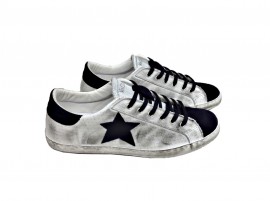 disponibili nella colorazione bianca in pelle,con riporto posteriore nero scamosciato, con lingua spezzata bicolore nero e argento, e stella nera in pelle,con la parte laterale traforata bucherellata, con logo nero stampato sulla lingua e passalacci abbinato alla scarpa, ad effetto sfumato su tutta la scarpa, dettaglio che da quel tocco in più a queste scarpe realizzate nel nostro calzaturificio situato a Barletta, dove la nostra mission si esplica nel fornirvi un prodotto di qualità, estremamente comodo , garantito made in Italy al 100%!